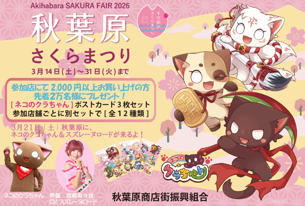 [아키하바라 사쿠라 마츠리 2026] 고양이 쿠라짱 엽서 득템! 점포 이벤트도 개최