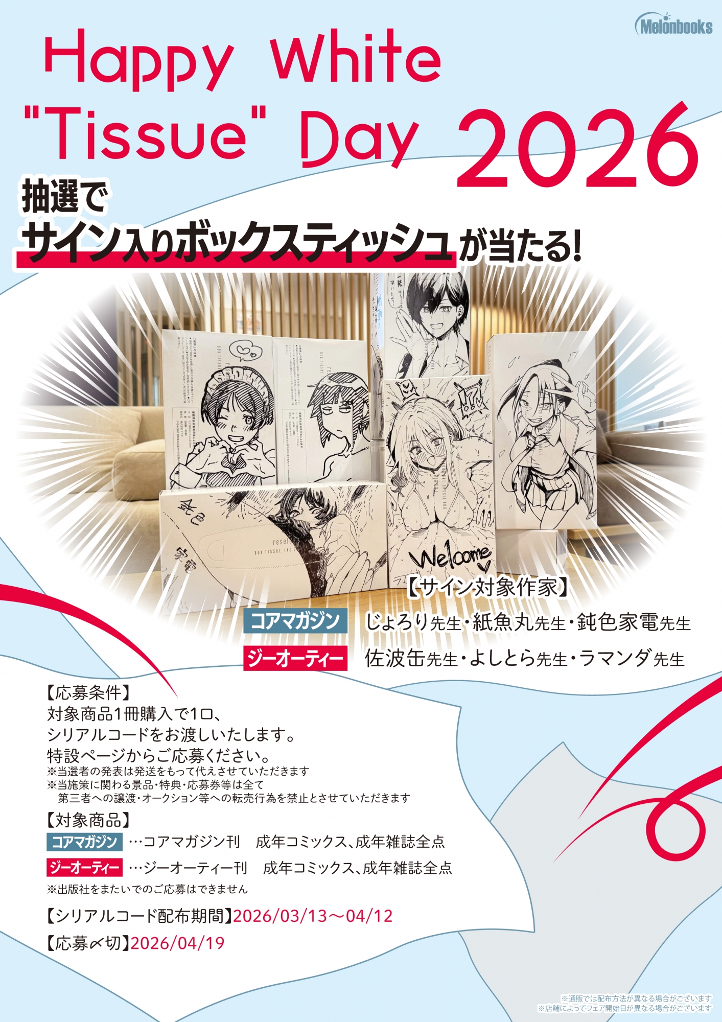 멜론북스 아키하바라 'Happy White "Tissue" Day 2026' 개최: 사인 굿즈 증정!