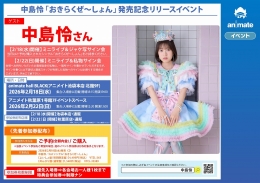 中岛怜《Okiraku Zeshon》发售纪念活动将在秋叶原Animate举行!