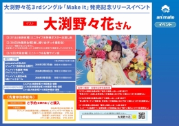 大渕野野花3rd单曲“Make it”发售纪念活动将在Animate秋叶原举办!